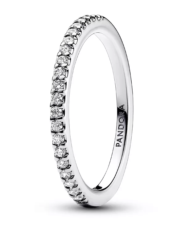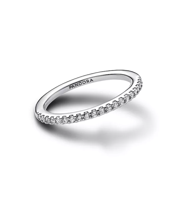 Выбирайте нежное сияние, надевая кольцо Sparkling Band. Это кольцо из стерлингового серебра, неотъемлемый элемент любой коллекции, украшено рядом прозрачных кубических цирконий. Этот ряд сверкает с внешней стороны кольца, имеющего квадратный профиль. Загляните внутрь кольца, чтобы увидеть гравировку культового логотипа Pandora. Носите ли вы его отдельно для создания нежного блеска или в сочетании с другими украшениями, это кольцо с кубическими цирконами украсит ваш повседневный образ.