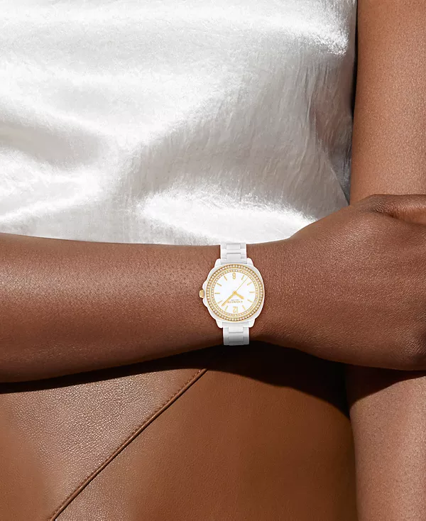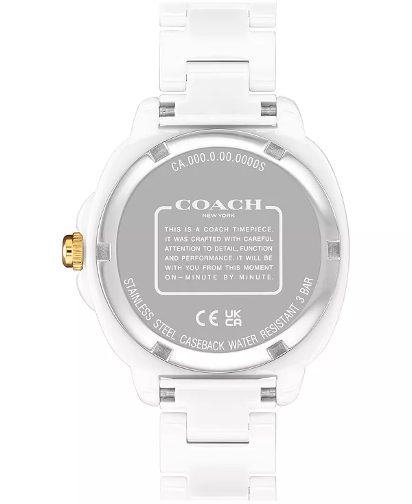 Женские часы Kitt с белым керамическим браслетом, 34 мм Coach, white