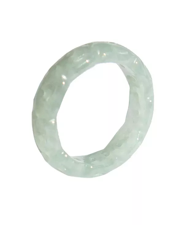 Это кольцо Weave изготовлено вручную из нефрита кремового цвета, что придает ему элегантный и изысканный «плетеный» вид.