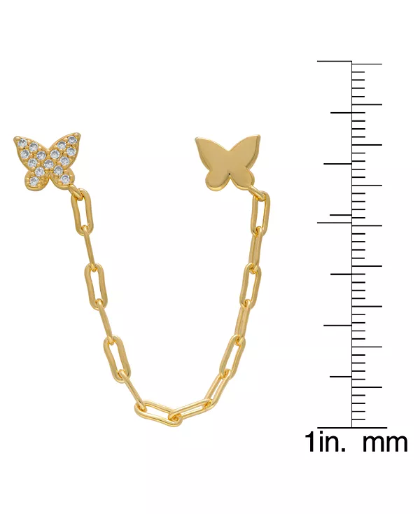 Взлетите выше и выше с этими двойными серьгами-гвоздиками в виде бабочек, соединенными свисающей цепочкой.