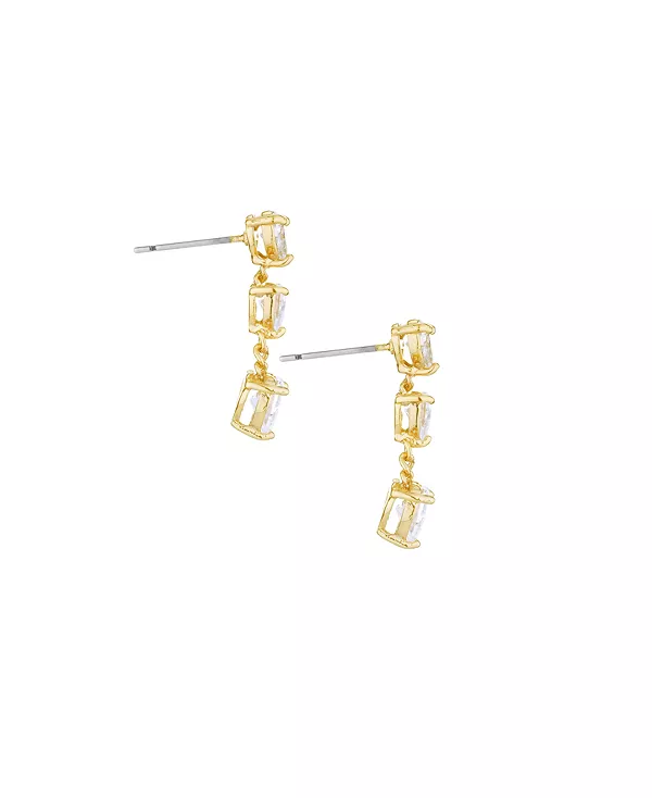 Изготовлены из 18-каратного золота с покрытием из латуни и искусственным кубическим цирконием.