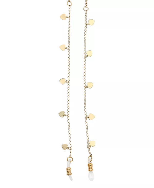 С золотистой цепочкой, украшенной подвесками в форме сердечек. Прекрасный способ всегда держать очки под рукой.