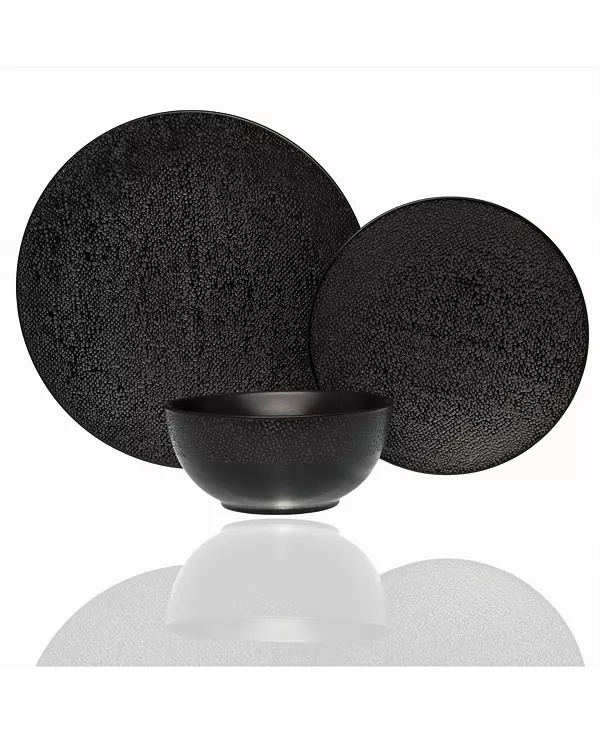 В набор входят: (6) обеденные тарелки, (6) салатные тарелки, (6) суповые миски.
