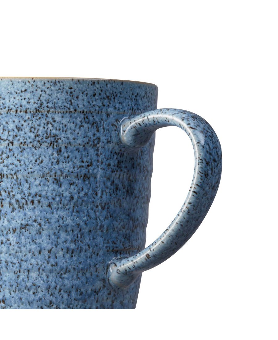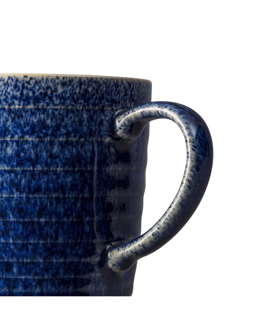Набор кружек Denby Studio Blue с ребристой поверхностью, выполненный в насыщенных тонах, сочетающих в себе оттенки фасада и светлые внутренние оттенки, отличается крапчатым рисунком по всей поверхности прочной керамики.