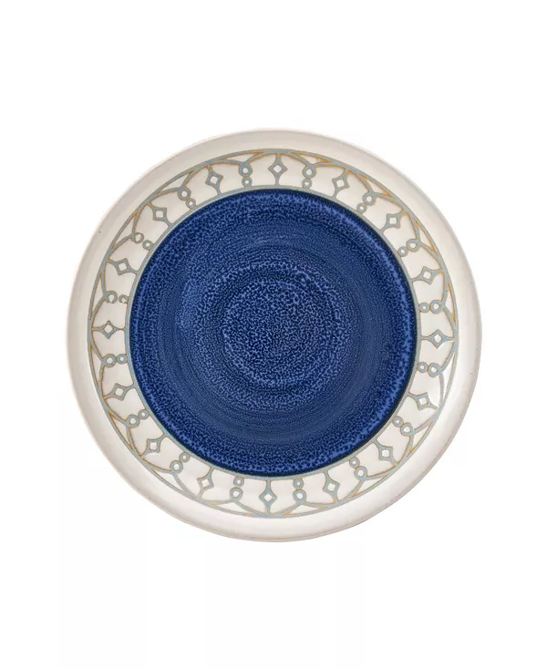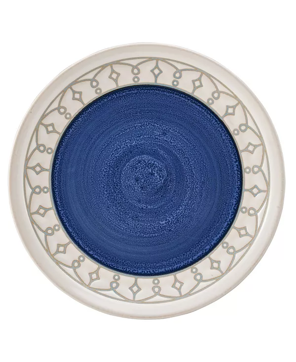 Этот современный и стильный набор придаст вашему столу яркий и экзотический вид. Каждый предмет имеет серединку землистого, крапчатого синего цвета с покрытием из реактивной глазури. Поразительный узор из бисквитного фарфора окружает каждый предмет, добавляя элемент художественного дизайна презентации.