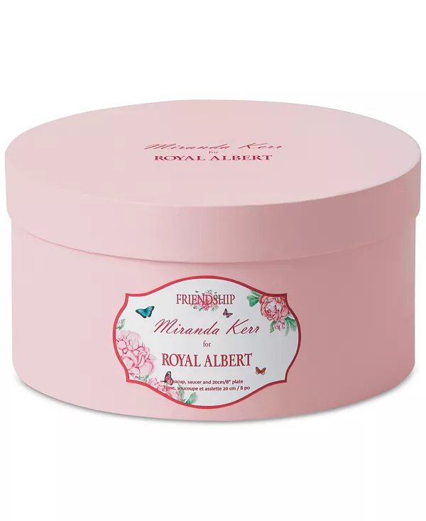 Восхитительно пышные цветы и изящные бабочки украшают чайный сервиз Miranda Kerr for Royal Albert Friendship, состоящий из чашки с блюдцем и тарелки идеального размера для булочек, ланча или десерта.