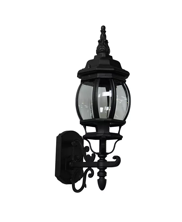 Компактный уличный настенный светильник Classico в европейском стиле с прозрачным стеклом и чёрным покрытием. Подходит для наружного освещения, улицы и патио.