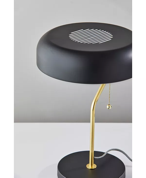 Эта настольная лампа – стильное решение, которое привнесет идеальное количество теплого, рассеянного света в вашу спальню или гостиную. Сочетание черного и латунного металлов создает классический облик середины века.