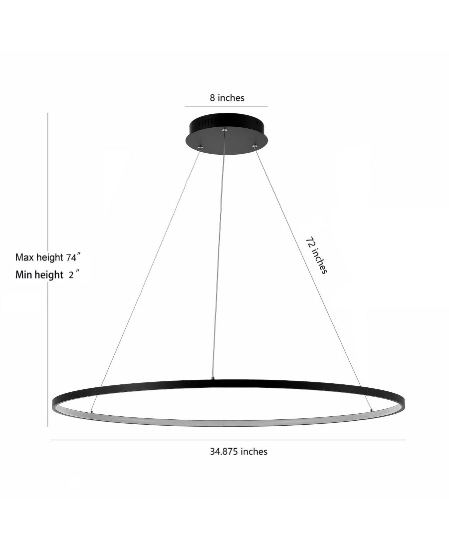Благодаря встроенным светодиодным лампам и элегантной черной металлической отделке, наша минималистичная люстра Ring станет современным акцентом в интерьере. Ширина 35 дюймов идеально подойдет для обеденного стола, кухонного острова или письменного стола. Регулируемая по высоте подвеска делает этот светильник идеальным вариантом для гостиной или прихожей.