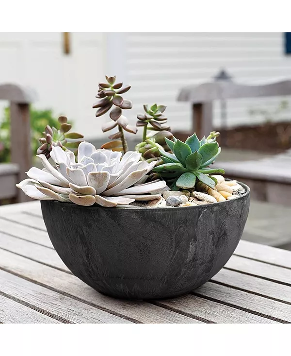 Новинка: кашпо MFG Co Napa Bowl изготовлено из фирменной смеси смолы и натурального камня, что обеспечивает долгий срок службы. Обладает максимальной морозостойкостью и устойчивостью к ультрафиолетовому излучению, имеет дно с ножками для оптимальной циркуляции воздуха и предназначено для использования без поддона или блюдца для дополнительного удобства.