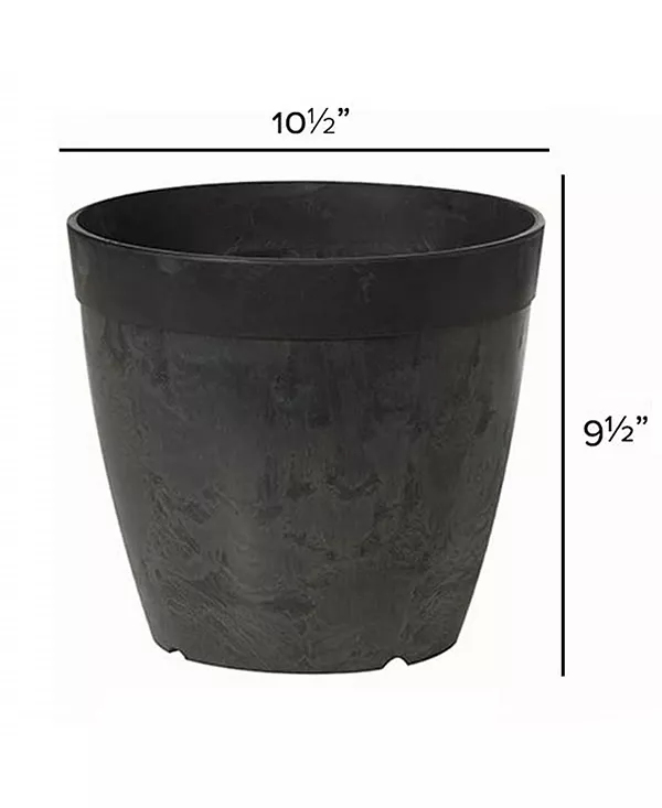 Красиво оформленное кашпо, которое прекрасно впишется в любой интерьер. Круглое кашпо диаметром 10 дюймов, черного цвета, в стиле «сладость». Поставляется со встроенной системой дренажа с функцией контроля полива. Подкармливает растения по мере необходимости, не опасаясь перелива. Изготовлено из фирменной смеси смол.