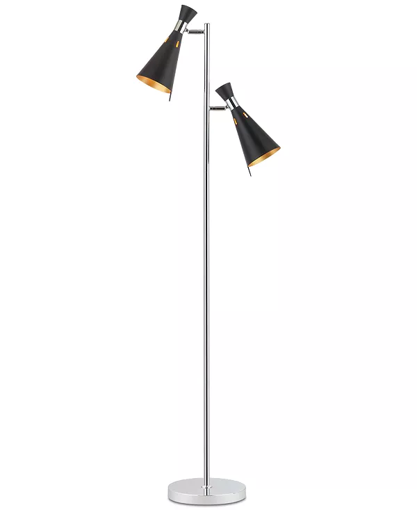 Добавьте современную интерпретацию ретро-стиля в свой интерьер с помощью торшера Efisio от Safavieh. Два чёрных конических плафона контрастируют с элегантным хромированным основанием, создавая стильный акцент в современных интерьерах.