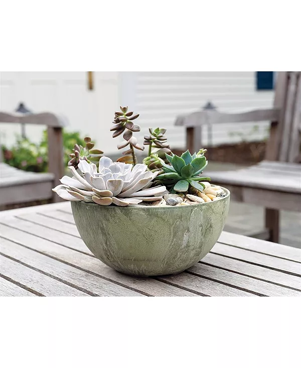 Новинка: кашпо MFG Co Napa Bowl изготовлено из фирменной смеси смолы и натурального камня, что обеспечивает долгий срок службы. Оно обладает максимальной морозостойкостью и устойчивостью к ультрафиолетовому излучению, имеет основание с ножками для оптимальной циркуляции воздуха и предназначено для использования без поддона или блюдца.