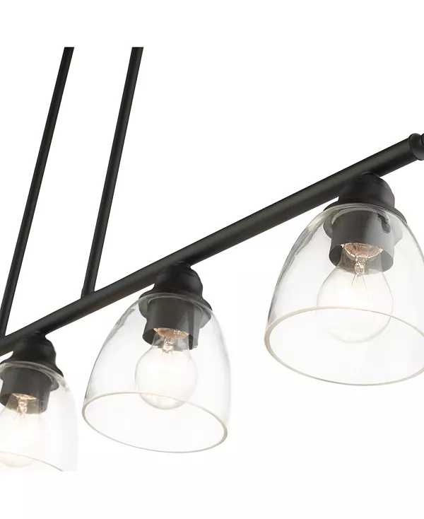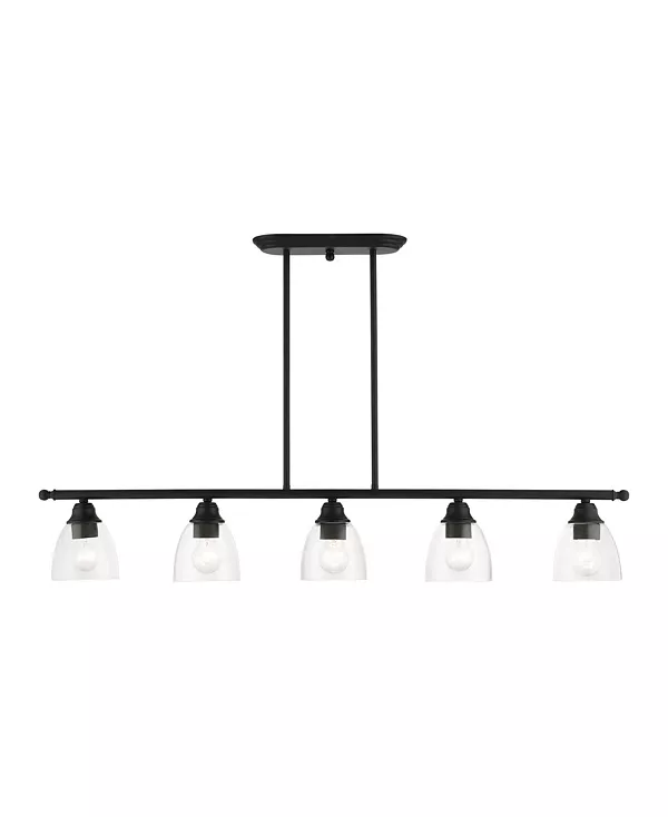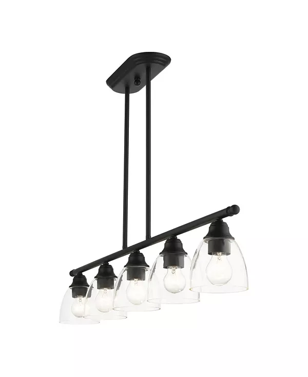 Эта линейная люстра станет идеальным дополнением к кухонному острову или столовой, будь то стильное или практичное освещение. Этот пятиламповый островной светильник из коллекции Montgomery Collection оснащен прозрачными плафонами из выдувного стекла ручной работы и представлен в черном цвете.