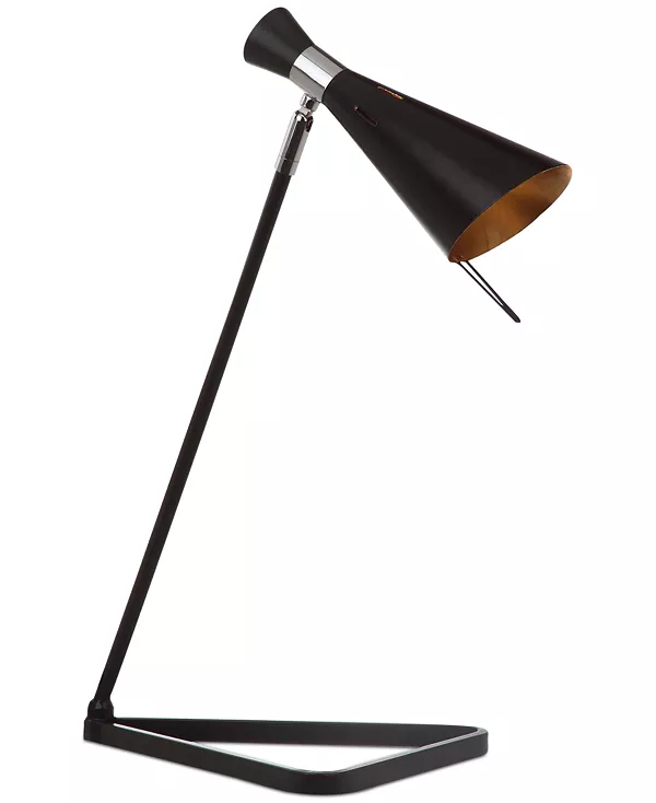 Добавьте нотку современного индустриального шика в любое пространство с помощью настольной лампы Padric в стиле «workstyle». Формы конического абажура перекликаются с формой треугольного основания и выполнены в современном черном цвете с металлическими акцентами.