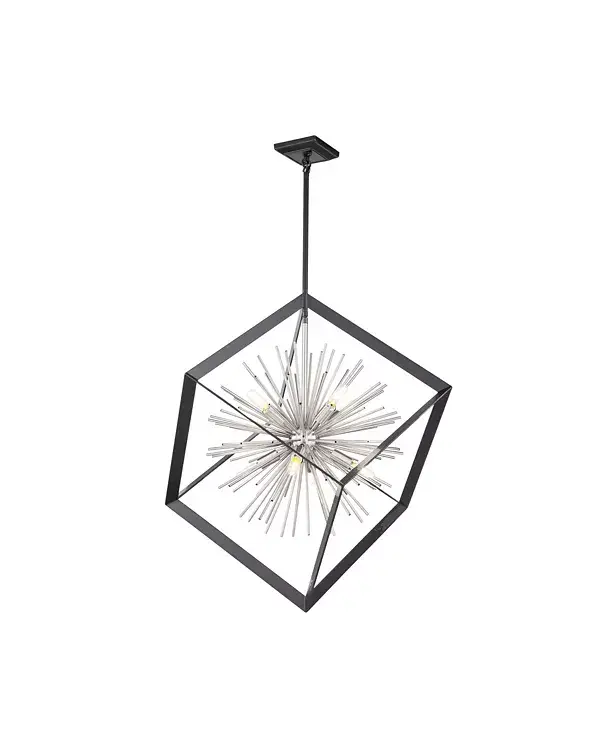 Люстра из коллекции Sunburst уникальна и, безусловно, станет прекрасным акцентом. Внешний каркас выполнен из матово-черного алюминия, а тонкие полые стержни цвета алюминия прикреплены к хромированному центру.
