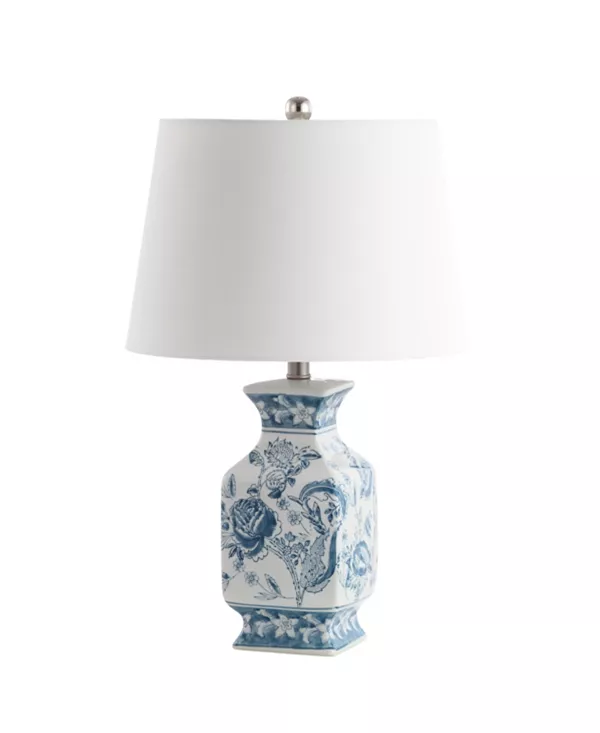 Этот неподвластный времени стол в сине-белой гамме, классический дизайн, мгновенно станет изюминкой любой гостиной. Изысканная керамика с великолепным ботаническим узором, шикарная хромированная накладка и абажур из 100% хлопка кремового оттенка дополняют его.