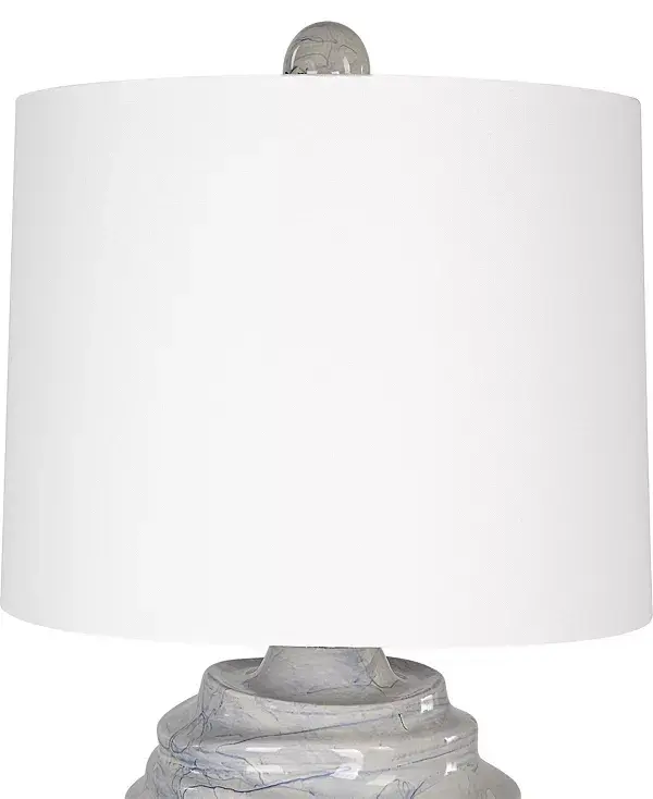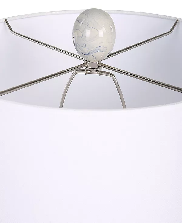 Эта керамическая лампа, представляющая собой современную интерпретацию классической сине-белой керамики, отличается уникальным скульптурным дизайном, нанесенной вручную глазурью светло-кобальтового цвета и крупным керамическим навершием в тон. Настольная лампа комплектуется белым абажуром в твердом переплете.