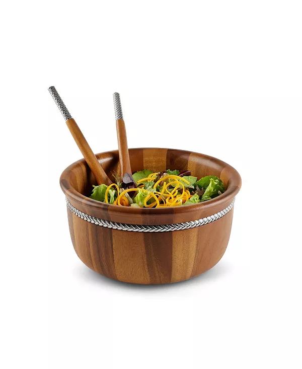 Круглая салатница Braid Round Salad Bowl с лопаткой идеально подходит для повседневного использования и подходит как для семейных ужинов, так и для камерных встреч с друзьями. Изящный плетеный узор по краю чаши и на ручках лопатки добавляет интриги и контраста эффектной текстуре дерева.