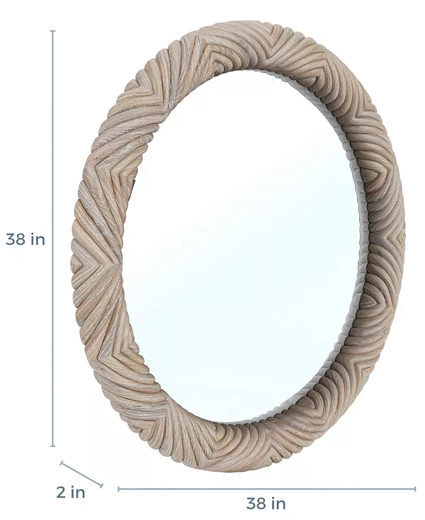 Круглое зеркало Catriona вдохновлено непринужденной прибрежной жизнью и природой пляжа. Отделка из канадской сосны и детальная гравировка сделают его идеальным дополнением к вашему дому на берегу моря.