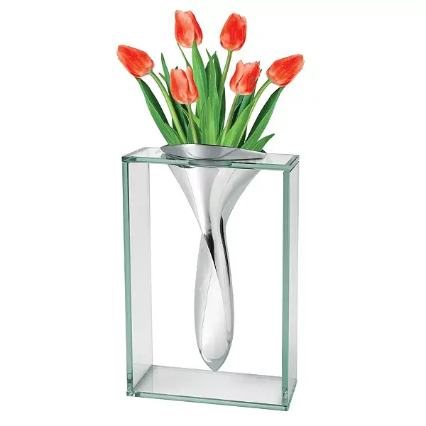 Ваза «Элвис» имеет не тускнеющий алюминиевый шарнир, проходящий посередине стекла, напоминающий знаменитые бедра короля.