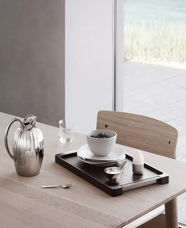 Искусно сочетая в себе функциональность и красоту, он идеально подходит для завтрака в Кровать или для подачи коктейлей на званом ужине. Стиль ар-деко прекрасно сочетается с барным гарнитуром Manhattan от Georg Jensen. Когда он не используется, он становится стильным декоративным предметом на столе или полке и прекрасным дополнением к любому стильному дому. Хрупкий. Корпус — дуб, ручка — нержавеющая сталь. Обрабатывать маслом и мыть только вручную.