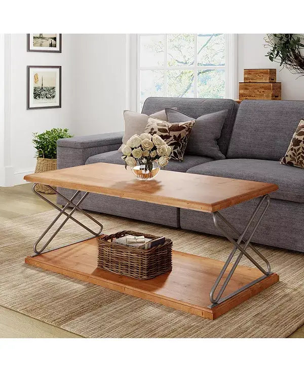 Слегка состаренная отделка и прочные, изящные металлические ножки придают этому современному журнальному столику нотку индустриального стиля. Вместительная столешница и нижняя полка идеально подходят для хранения любимых книг, журналов и предметов декора.