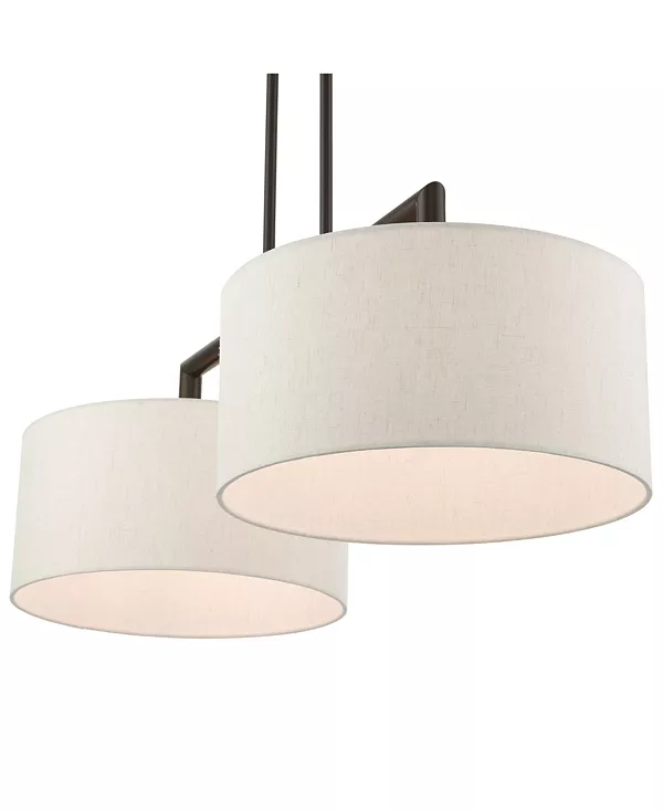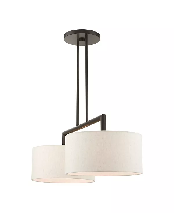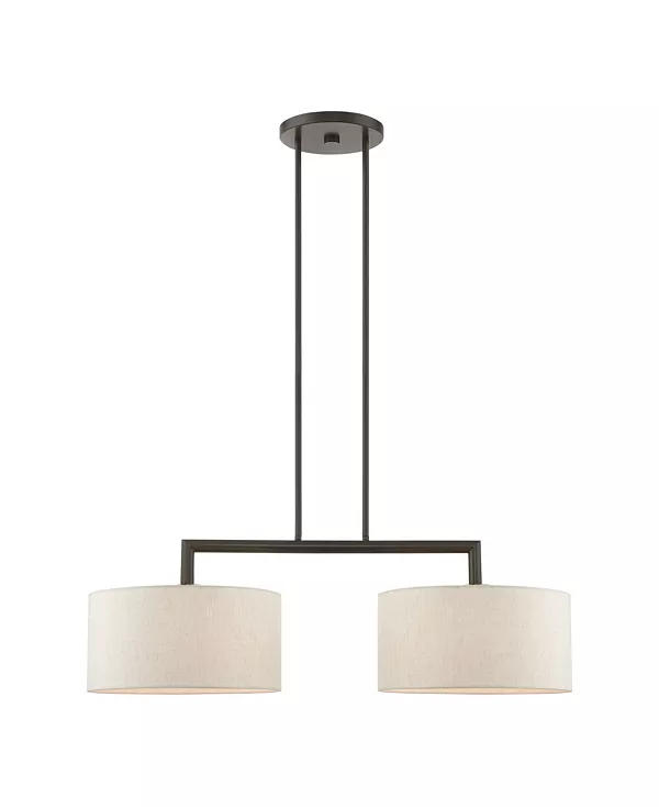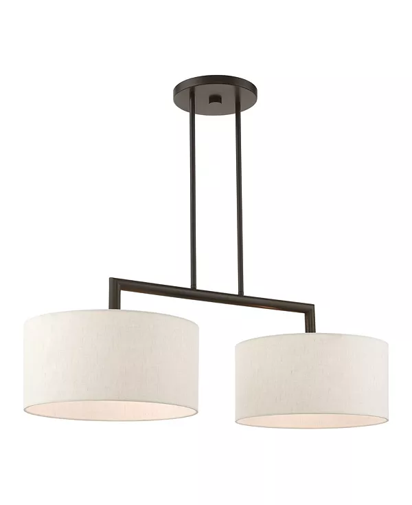 Коллекция Meridian отличается чистым, четким дизайном и современным стилем. Тканевые абажуры ручной работы создают рассеянный теплый свет. Эта двухламповая линейная люстра имеет элегантный верхний каркас над двумя плафонами.