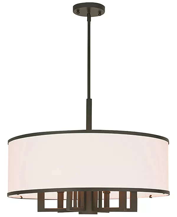 Изысканный льняной абажур ручной работы и четкие металлические акценты этой изящной подвесной люстры Park Ridge от Livex мгновенно привнесут в ваше пространство привлекательный переходный стиль и мягкое освещение.