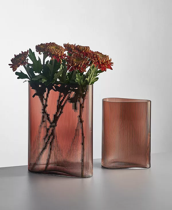 Эта высокая ваза Mist карамельного оттенка от Тамера Накиши для Nude Glass играет с оптическими иллюзиями. Отлитая из гофрированного хрусталя без содержания свинца, поверхность с волнистым эффектом слегка размывает стебли цветов, направляя взгляд к лепесткам.