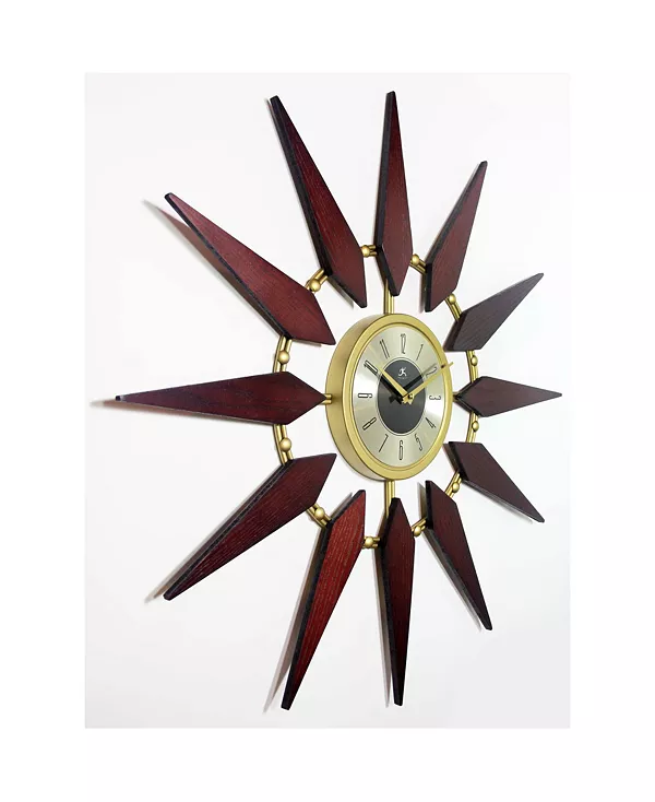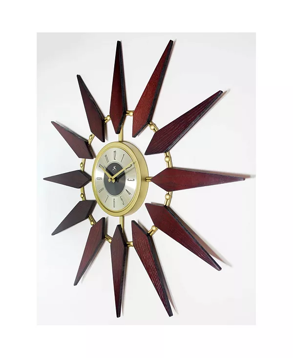Эти настенные часы с изображением звезд, вдохновлённые дизайном середины века, но в современной интерпретации, отличаются сбалансированной универсальностью. Насыщенный деревенский оттенок натурального орехового дерева и роскошь золотистой латунной фурнитуры.