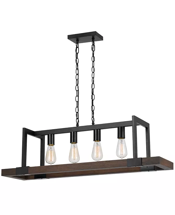Добавьте деревенского акцента в кухонные островки или обеденные зоны с помощью люстры Antonio Wood мощностью 60 Вт на 4 лампы от Cal Lighting. Линейный дизайн из дерева и металла идеально подходит для лампочек Эдисона, излучающих тёплый свет.