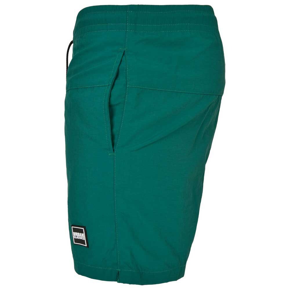 Нет смысла идти под землю! Шорты для плавания Block от URBAN CLASSICS — ваш идеальный спутник лета. Оптические детали, такие как нашивка с логотипом и белые шнурки, завершают спортивный образ. Два боковых кармана и один задний карман на молнии обеспечат место для важных вещей.