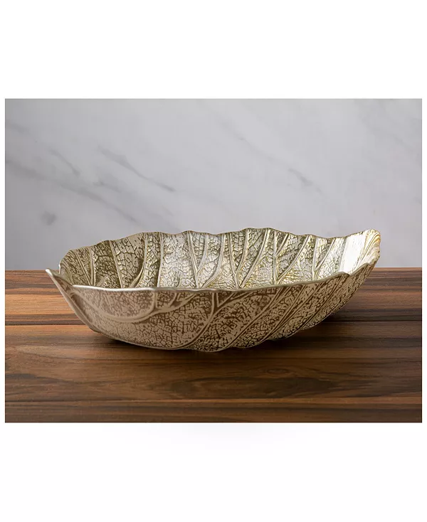 Это блюдо в форме листа золотистого оттенка искусно создано нашими дизайнерами. Мы выбрали форму листа за его практичный размер и дизайн, основанный на природе. Это блюдо настолько красиво, что его можно использовать как центральный элемент, не ставя на него ничего.