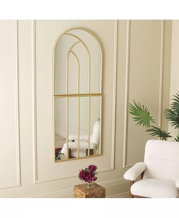 Обновите свой дом с помощью классического элегантного настенного зеркала Emezza, которое добавит ему современных деталей. Оно преобразит арочное зеркало в форме оконного стекла, добавив современные и игривые детали. Асимметричные панели с полированной золотой отделкой добавят вашему дому нотку роскоши.