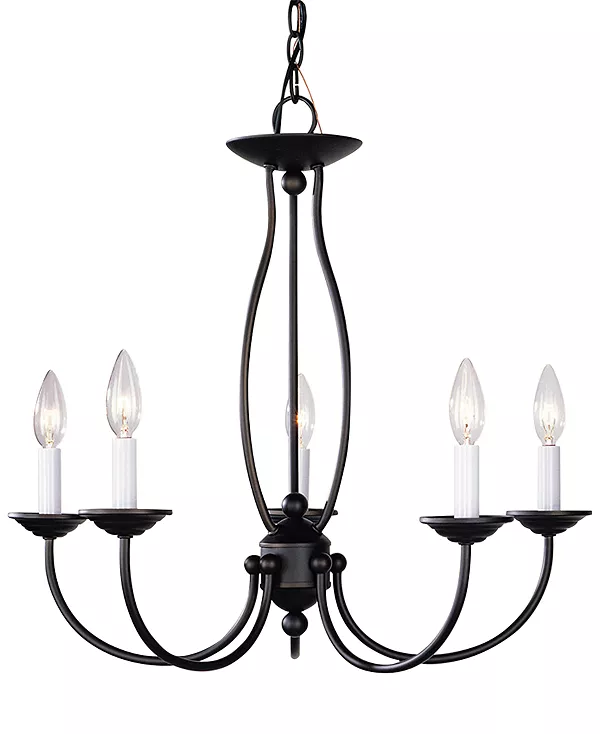Добавьте тёплого света и современной простоты в свой интерьер с люстрой Home Basics от Livex. Изготовленный вручную бронзовый каркас украшен широкими арками, на которых закреплены пять лампочек, что создаёт лаконичный образ для переходных зон или столовых.