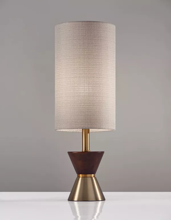 Добавьте нотку модерна середины века в свой интерьер с настольной лампой Carmen от Adesso. Двухцветное основание в форме песочных часов с отделкой цвета ореха и античной латуни притягивает взгляд; высокий цилиндрический абажур нежно-бежевого цвета с текстурой добавляет пропорций и создает мягкое сияние.