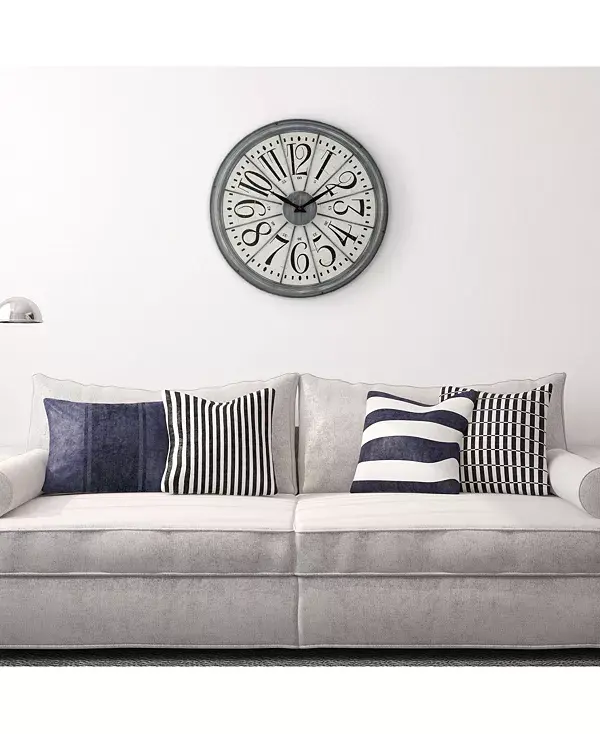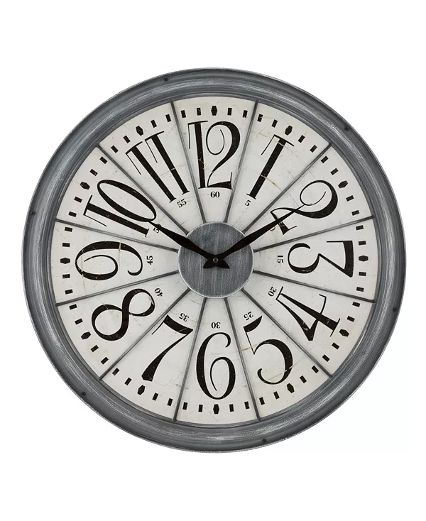 Сочетание 20-дюймовой металлической рамы с деревянным циферблатом дополнит комнату в деревенском стиле. Промышленный дизайн с металлическими сегментированными часами и черными металлическими стрелками. Точный кварцевый механизм и работа от одной батарейки, что позволяет повесить часы на любую стену.