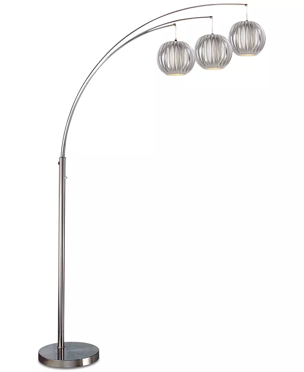 Создайте современный стиль и осветите свое пространство с помощью плиссированных сферических абажуров, изогнутых рожков и обтекаемой штанги этого потрясающе красивого 3-лампового напольного светильника Arch от Light Source.