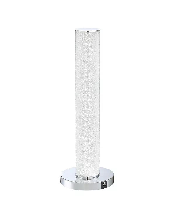 Добавьте элегантности в любую комнату с этой современной светодиодной настольной лампой. Акриловый цилиндрический корпус, напоминающий бриллиант, основание из полированной стали, сенсорное включение и выключение, а также два USB-порта для зарядки.