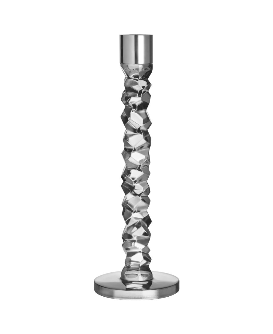 Подсвечник Carat из графита доступен в трех размерах с деталями из нержавеющей стали. Неправильная геометрия создает красивые блики света в кристалле.