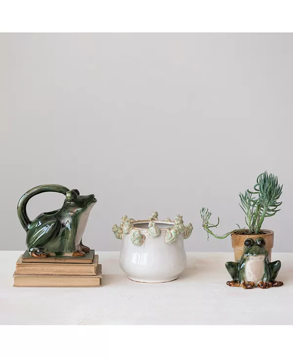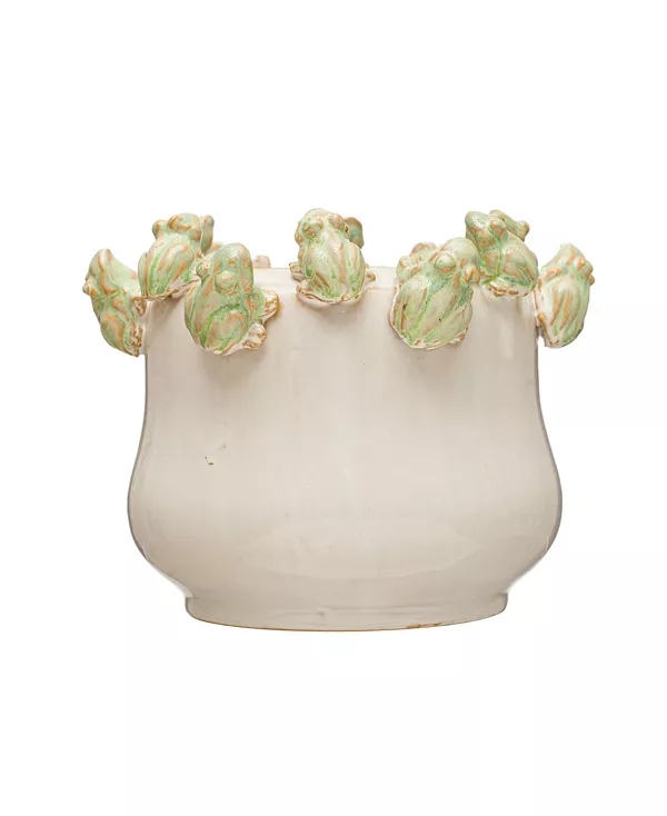 Керамическое кашпо с ободком в виде фигурки лягушки Storied Home, ivory