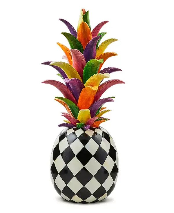 Тропический колорит с изюминкой! Эта фигурка «Тутти Фрутти» от Mackenzie-Childs воссоздает ананас в ярком цвете и с узором Courtly Check.