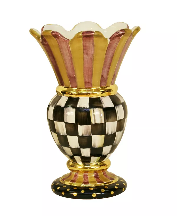 Эта ваза Mackenzie-Childs станет ярким акцентом обеденного стола или гостиной. Она впечатляет своими размерами и украшена фирменным узором Courtly Check.