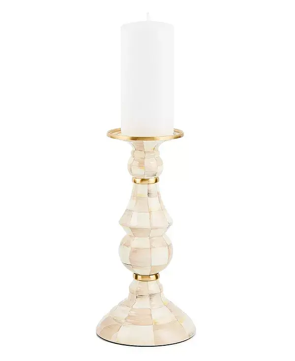 Создайте стильное и выразительное впечатление, разместив свечи-столбики на большом подсвечнике Mocha Check.