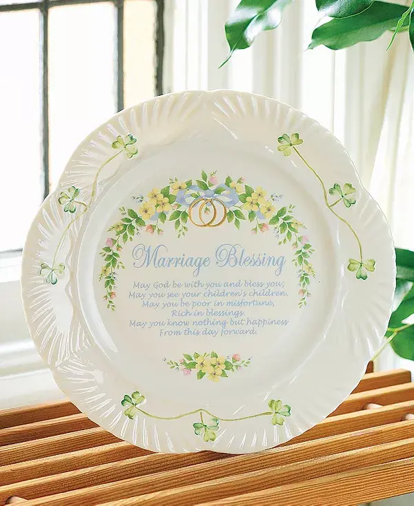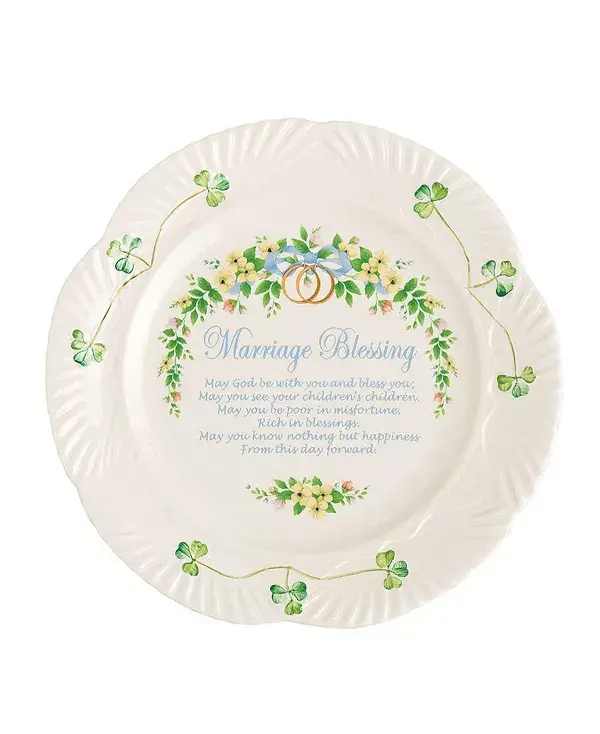Свадебный подарок от Belleek будет бережно храниться долгие годы. Декоративная тарелка для благословения брака создана с особым посланием, чтобы отпраздновать одно из самых памятных событий в жизни. Украшенная трилистниками и тиснеными вручную деталями, эта тарелка выглядит привлекательно и трогательно.