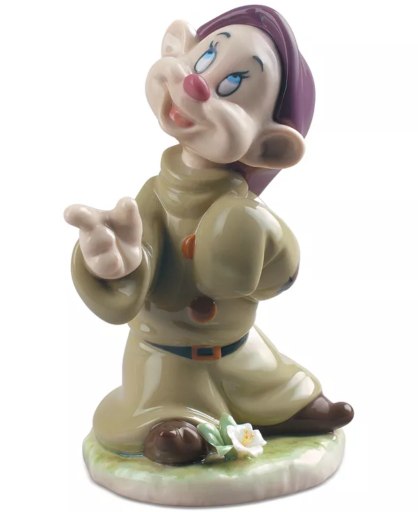 Милое выражение лица характеризует фигурку Lladró Dopey, подругу Белоснежки, которая носит нежные фарфоровые складки на одном из фирменных цветов коллекции.