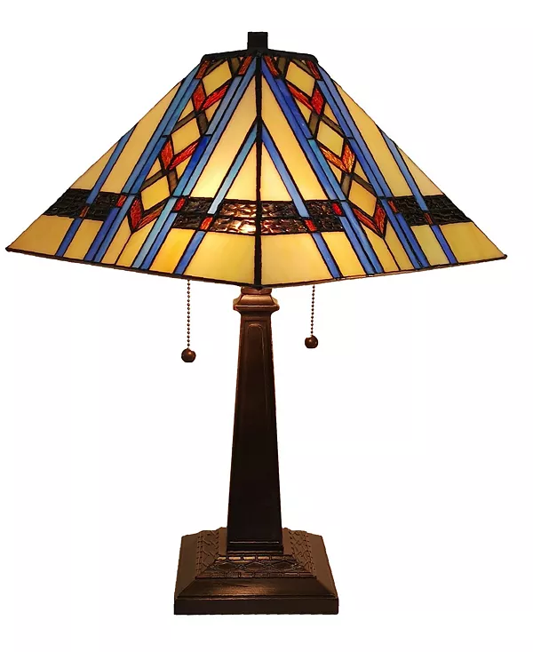 Осветите свой дом этой уникальной настольной лампой и добавьте красоты окружающему пространству. Эта изысканная лампа состоит из 236 индивидуально вырезанных стеклянных элементов синего, красного и желтоватого оттенков, а также из темно-коричневого цинкового основания.