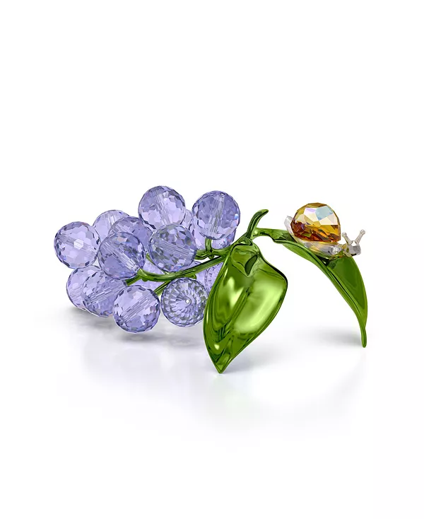 В этом игривом взаимодействии флоры и фауны Swarovski изобразил крошечную улитку, исследующую связку черники. Идиллическая сцена выполнена в ярких цветах благодаря 2192 граням, которые искусно оживляют каждую деталь. Листья и стебель выполнены из металла с блестящим зелёным лаком, завершая образ, наполненный радостной экстравагантностью. Добавьте это украшение в интерьер своего дома, чтобы придать ему неповторимый штрих.