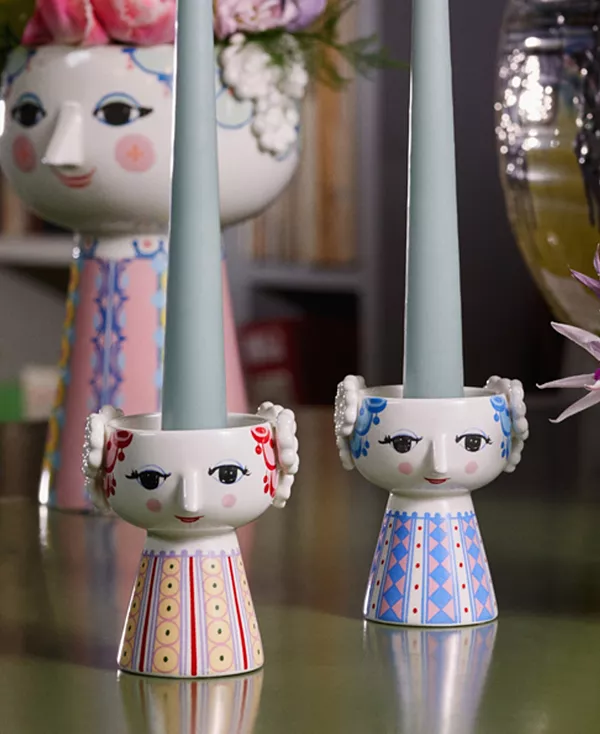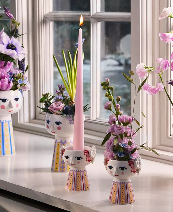 Стиль Бьёрна Вайнблада совсем не минималистичен. Он роскошен, оригинален и прекрасен, его отличительными чертами являются яркие цвета и уникальный дизайн. Вы также найдёте множество его причудливых и художественных украшений на подсвечниках Eva. Дизайн представляет собой настоящее сочетание цветов и геометрических фигур, словно нарисованных от руки, которые каким-то образом идеально сочетаются друг с другом.